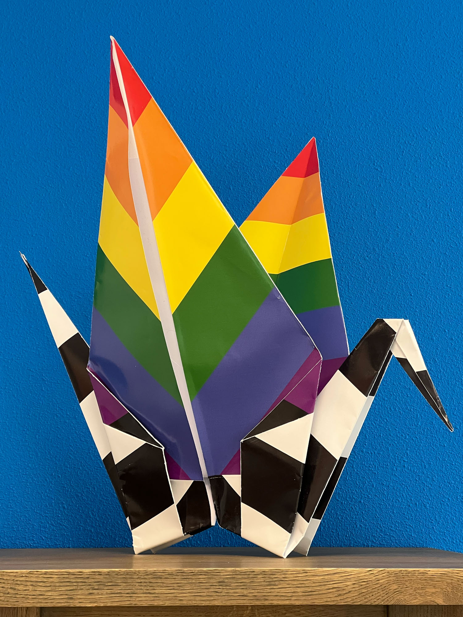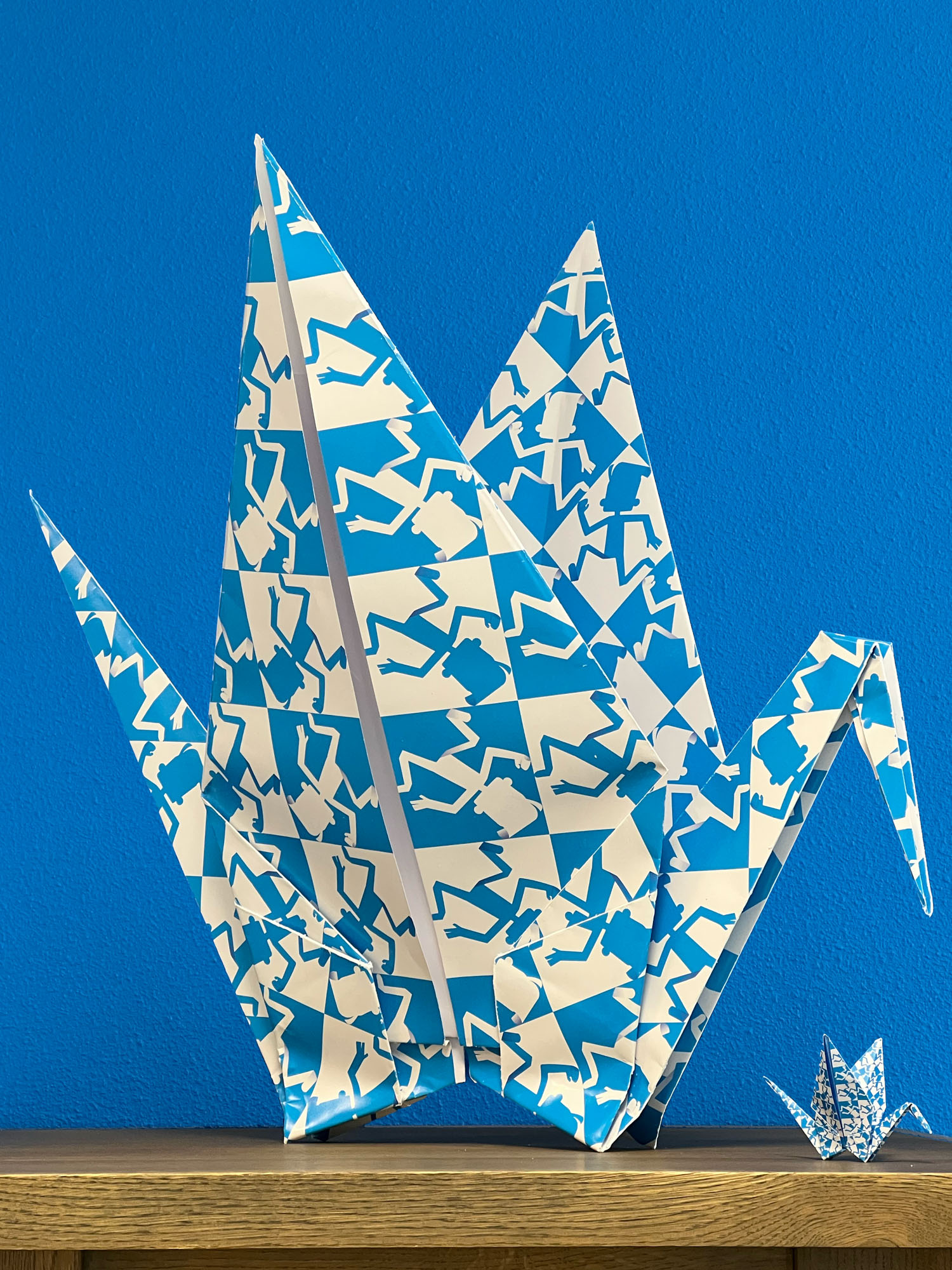 Origami kreeg een nieuwe dimensie na zijn bezoek aan Hiroshima in 2024, waar hij het verhaal van Sadako Sasaki leerde kennen. Zij maakte de kraanvogel van een gelukssymbool, tot een protest tegen oorlog. Geïnspireerd begon Louis zelf kraanvogels te vouwen en te schenken als kleine attenties. Inmiddels is dit uitgegroeid tot een uitgebreide serie met uiteenlopende ontwerpen en betekenissen en worden tentoongesteld in zijn eerste solo expositie in Kunstkamer Holland Huis. De expositie toont naast zijn illustratie werk ook enorme kraanvogels gevouwen van papier van 1,20 bij 1,20 meter, te zien in het originele design tot de kleurrijke Pride designs op acht sokkels.