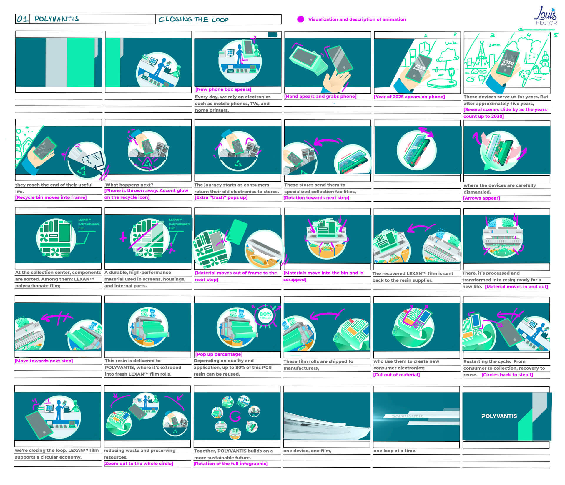 Voor Polyvantis maakte ik deze explainer over afgedankte consumentenelektronica. Van inzameling, demontage tot materiaalterugwinning. Het laat zien hoe stap voor stap de LEXAN™-film wordt herwonnen, verwerkt wordt tot PCR-resin en omgevormd tot deze nieuwe film door POLYVANTIS.